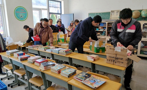 七道河鄉黨委書記鄧閣軍,石城子村黨支部書記、村主任胡鳳伍,石城子小學師生熱情接待了藝術設計學院的教師們。藝術設計學院為石城子小學帶來北服教師捐贈的圖書,建立石城子小學圖書室。捐贈儀式后,藝術設計學院教師與石城子村相關負責人就扶貧攻堅項目后續工作進行了深入細致的交流。