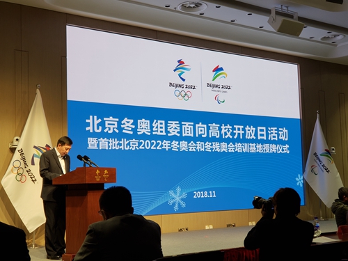 開放日活動(dòng)后,在北京冬奧組委多功能廳舉辦了首批培訓(xùn)基地授牌儀式。我校連同北京大學(xué)、清華大學(xué)等10所高校及延慶區(qū)體育局成為冬奧組委首批認(rèn)定的培訓(xùn)基地。