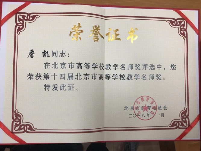 - 詹凱教授榮獲“第十四屆北京市高等學校教學名師”稱號