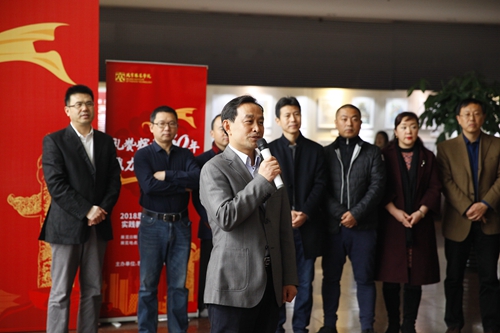11月26日上午10:00,由思想政治理論課教學部主辦,美術學院、教務處、黨委學生工作部協辦的2018思想政治理論課實踐教學藝術作品展在綜合樓大廳開幕。本屆展覽主題為“禮贊輝煌40年 勠力同心奔小康”。