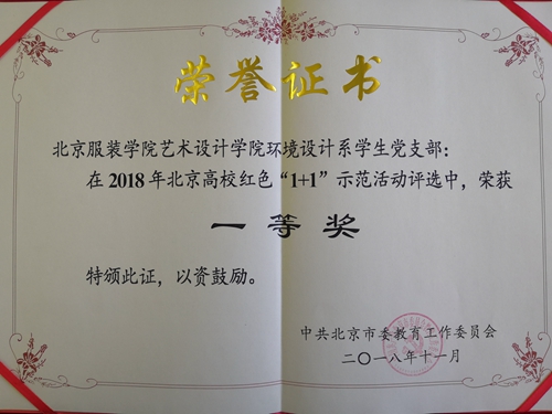 - 藝術設計學院環境藝術設計專業學生黨支部 在北京高校紅色“1+1”示范活動評選中榮獲一等獎