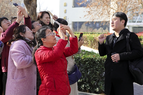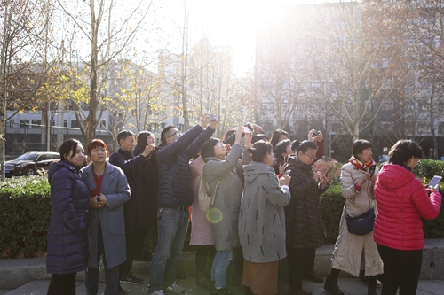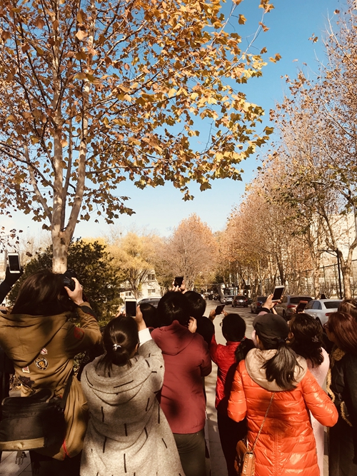 講座之后,由攝影系的陳大公、陳小波、蘇溯和沈忱四位指導老師帶領各位學員,在北服校園內進行現場教學與拍攝實踐,并參加“大美北服隨手拍”活動。大家分別用手中的相機、手機,按老師所指導的角度、光線、構圖以及畫面主題方法,在往日熟悉的校園里,拍攝下一張張讓自己都驚嘆的照片。拍攝過程中,大家時而是攝影師,時而又充當模特,其樂融融,共同感受和體驗攝影這門藝術給大家帶來的樂趣與美感。
