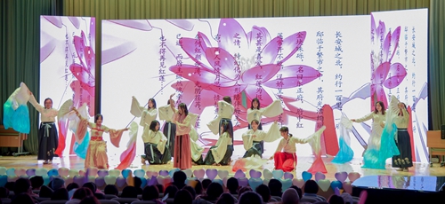 黨委副書記倪賽力,黨委組織部部長殷文生、學生工作部部長張宏娜,離退休工作處處長韓福華,服飾藝術與工程學院院長蘭翠芹、副院長陳曉華、李雪梅、黨委副書記張鐵峰,以及信息工程學院和服飾藝術與工程學院班主任、學生共400余人一同觀看演出。