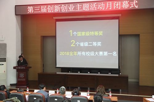 倪賽力副書記在總結講話中,高度肯定了創新創業主題活動月在我校創新創業教育中所發揮的積極作用,同時對下一步工作提出了四點要求:一是借勢借力、整合資源,強化我校創新創業教育工作內涵發展;二是謀事謀略、統籌協調,強化工作效果;三是聚智聚才、內外結合,強化創新創業團隊建設;四是導師引領、深入挖潛,強化四創融合。希望創新創業學院在未來的工作中,在學校和相關部門的大力支持下,在創新人才培養方面進一步做大文章,做出更大貢獻。