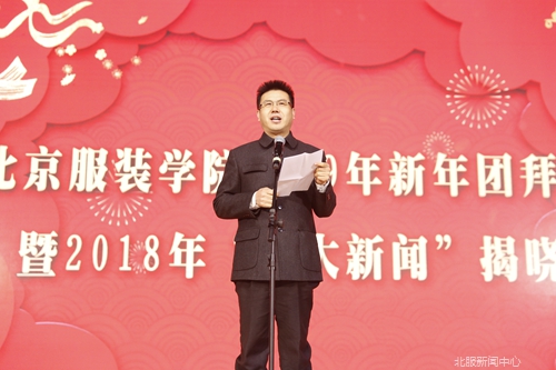 隨后,《2018年“十大新聞”》揭曉視頻的播放,發布了一年一度的“十大新聞”評選結果。2018年我校大事多,社會影響大。12月初,黨委宣傳部將一年來發表在官網和校報上的近600則新聞,按照十大新聞的要求初選形成42條新聞題目作為投票范圍,進行了紙質選票以及官網、官微在線投票相結合的投票,廣大師生積極參與,最終評選出(按新聞時間順序排序):一、作為中英高級別人文交流機制第五次會議的重要內容之一,北京服裝學院與英國王儲傳統藝術學院、敦煌研究院、敦煌文化弘揚基金會在英國倫敦簽署“敦煌服飾文化研究暨創新設計中心”戰略合作框架協議,"敦煌服飾文化研究暨創新設計中心"掛牌并舉辦“絕色敦煌之夜”服飾設計展演;二、北京服裝學院學報藝術版《藝術設計研究》首次進入CSSCI來源期刊目錄;三、我校被教育部授予“全國高校實踐育人創新創業基地”稱號;四、楚艷、周紹恩老師服裝設計團隊成功設計平昌冬奧會“北京8分鐘”表演服裝,團隊榮獲2018年北京市工人先鋒號稱號;五、北服兩名校友登上福布斯2018亞洲30位30歲以下精英榜(林海、高雪);六、陳靜獲第二十屆OFF FASHION 國際青年服裝設計師大賽一等獎,三名學生(李思杰、金璐菲、彭望望)包攬首屆美國 ETFashion Global Design Awards全球時裝設計大賽配飾組金、銀、銅獎;七、北服“中華民族服飾文化研究”項目獲批2018年度國家社科基金藝術學重大項目;八、詹凱教授、姜延副教授分別榮獲第十四屆北京市高等學校教學名師獎及第二屆北京市高等學校青年教學名師獎;九、北服參與“偉大的變革——慶祝改革開放40周年大型展覽”之“改革開放40周年群眾服裝變化”展區工作;十、藝術設計學院環境設計系教師黨支部獲首批參與培育創建“全國黨建工作樣板支部”殊榮,藝術設計學院環境藝術設計專業學生黨支部在北京高校紅色“1+1”示范活動評選中榮獲一等獎。