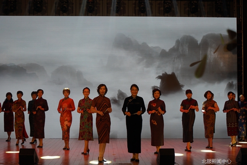 團拜會現場歌聲悠揚,舞姿蹁躚,歡歌笑語,熱鬧非凡。語言文化學院分工會鄭華偉、劉穎、張慧琴、趙二東等老師帶來的中外兒歌串燒《童心無界》,唱出了老師們無暇的快樂心情;服裝藝術與工程學院分工會劉衛老師帶來歌曲《祝福》,商學院分工會韓燕老師帶來歌曲《最浪漫的事》,贏得全場掌聲;離退休老教師合唱團的混聲合唱《不忘初心》,藝術設計學院分工會朱夢婷老師帶來鋼琴獨奏《When you wish upon a star》,時尚傳播學院分工曲悅老師的女聲獨唱法語歌曲《卡迪斯城的姑娘》,機關分工會馬建軍、王曉鷗、宛文科、葛麗玲老師的合唱《我愛你中國》,為團拜會帶來一個又一個歡快的篇章。最后,由黨委副書記艾麗帶領的女教授協會的老師們帶來旗袍秀表演,為團拜會畫上了圓滿的句號。