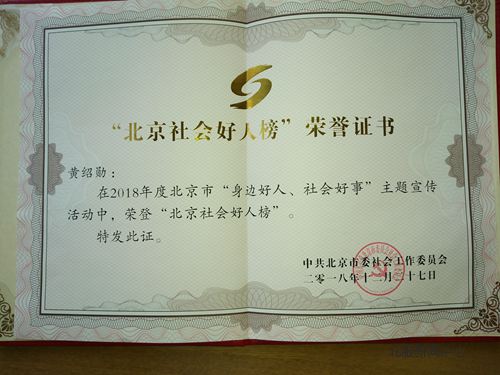 - 黃紹勛副教授榮登2018年“北京社會好人榜”