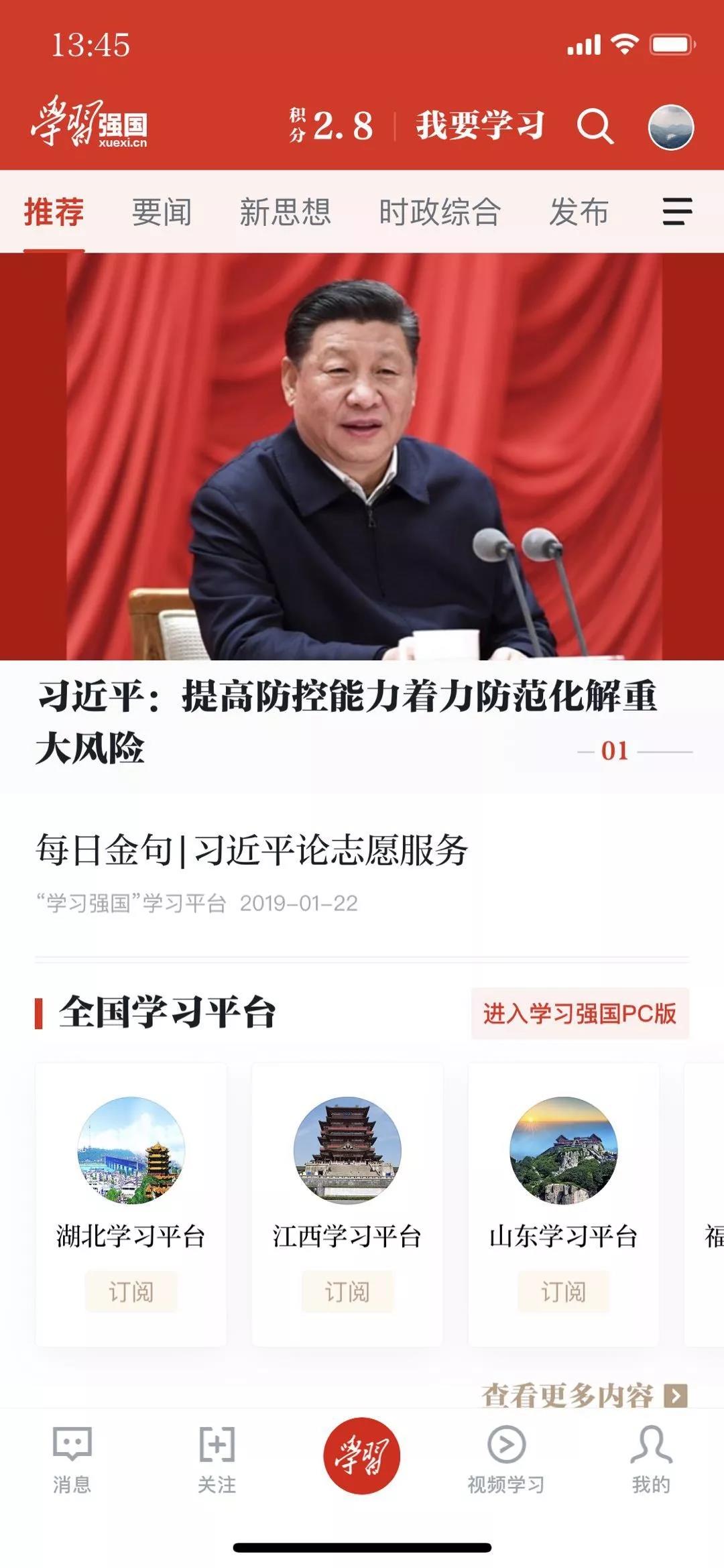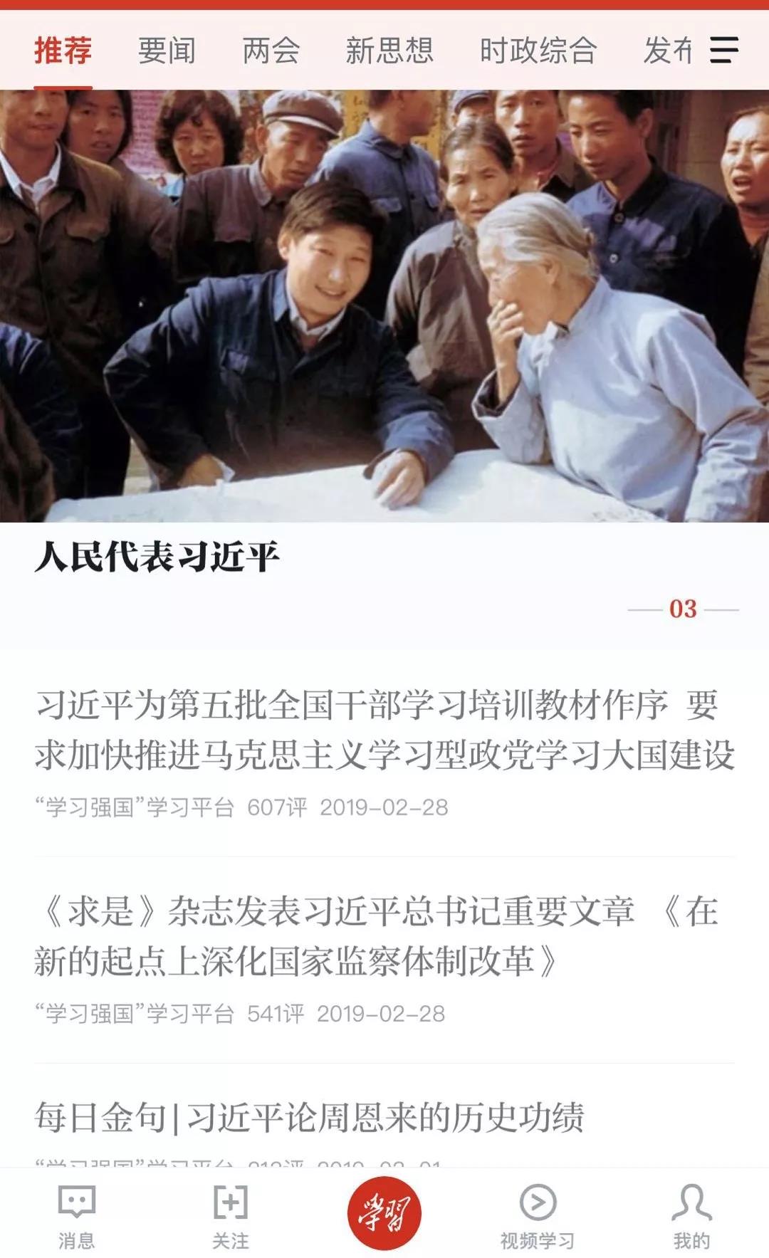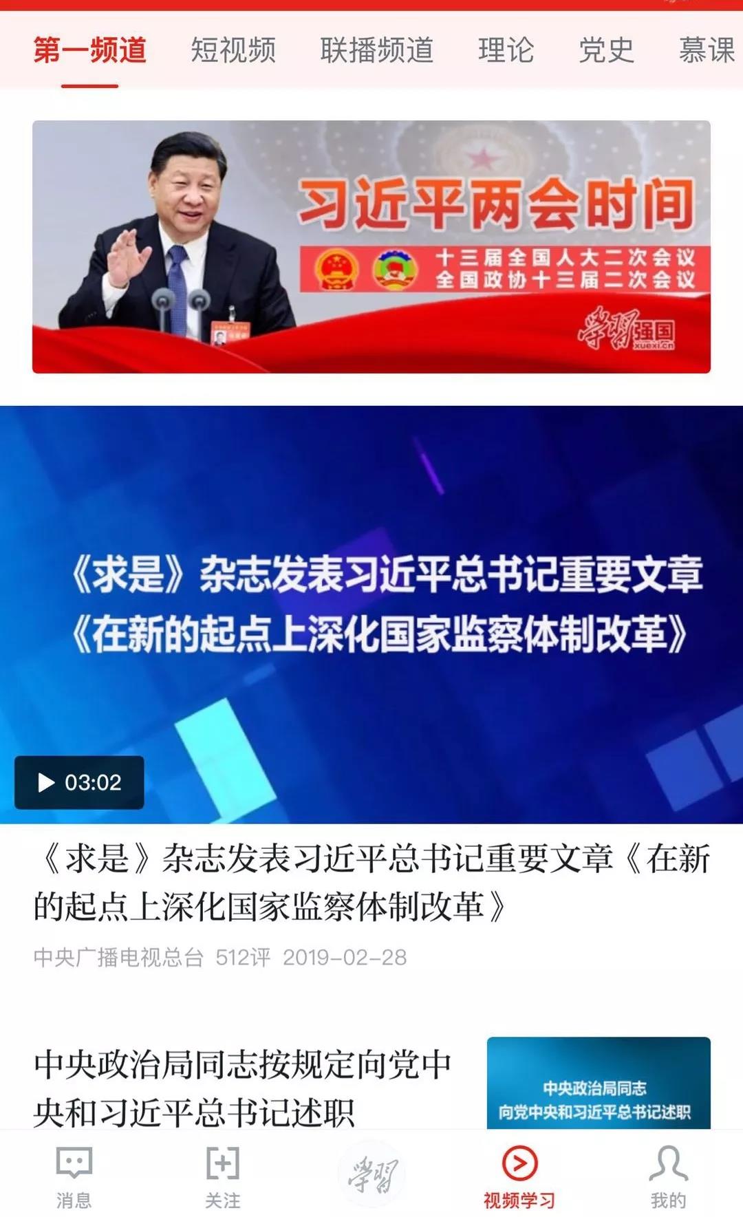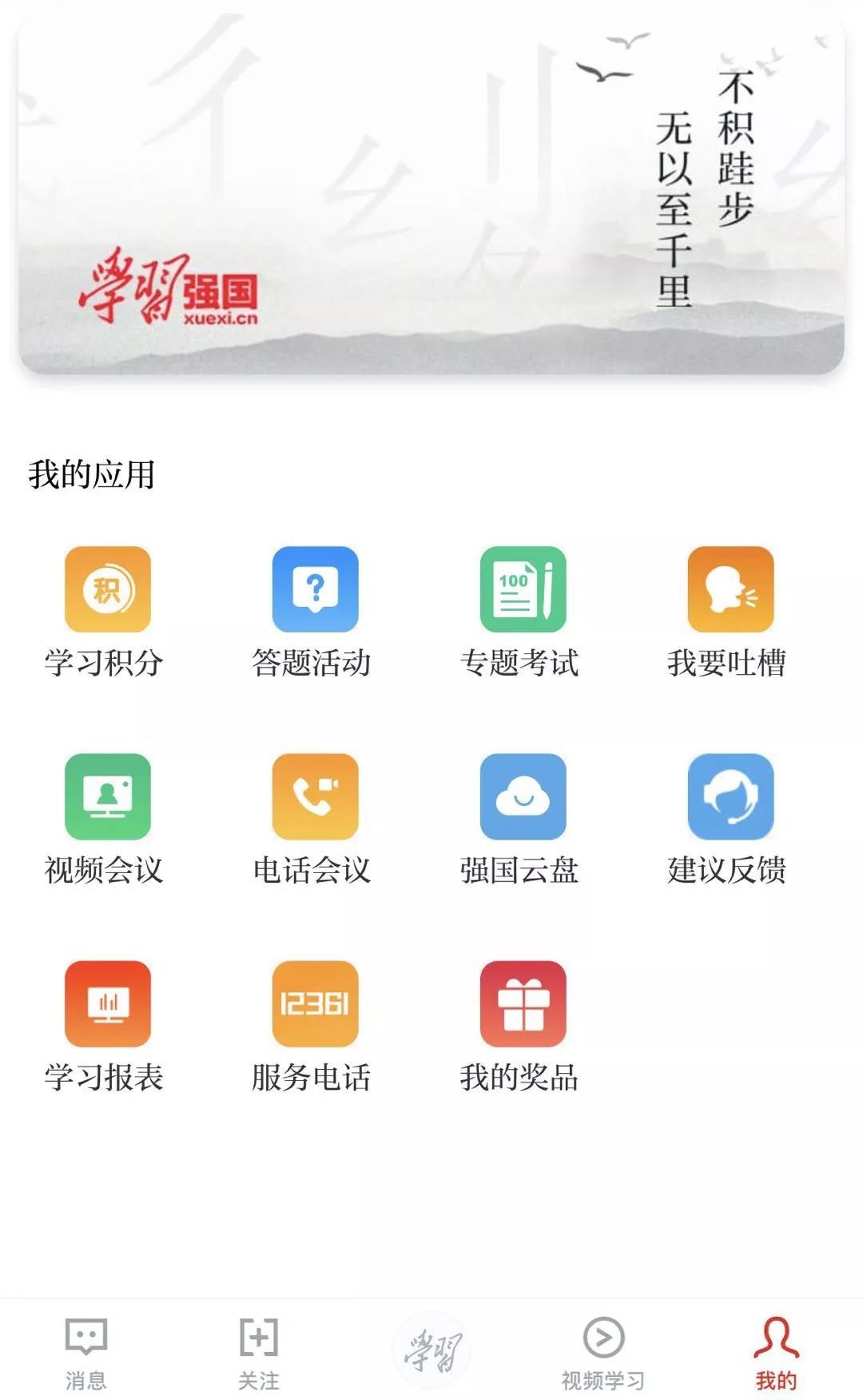 客戶端底部,除“學(xué)習(xí)”“視頻學(xué)習(xí)”外,還有“消息”“關(guān)注”“我的”三個(gè)按鈕。