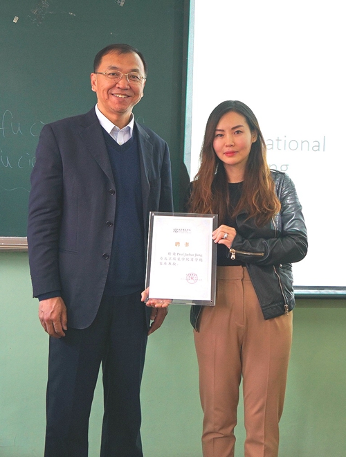 黨委常委、副院長仲叢生為Jaehee Jung教授頒發(fā)客座教授證書