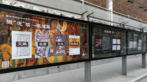 本次展覽分別在圖書館大廳以卷軸的形式、校園風雨操場南側以展板的形式進行,展示內容均為圖書館精選的敦煌相關資源,并附有簡要介紹。此外,師生可到圖書館四層B402敦煌文庫現場翻閱圖書;也可通過網絡隨時在線查看“敦煌文獻庫”中的電子圖書。