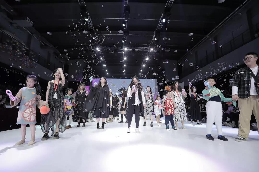 2019“北服時(shí)裝周”針織服裝設(shè)計(jì)專業(yè)的展演主題為“咔洽”,是扭蛋的別名。寓意隨機(jī)扭取,驚喜未知。整場(chǎng)大秀圍繞這一妙趣輕松的主題延展,泡泡機(jī)、小貓咪、可愛的孩子加暖調(diào)的織色服飾,最大化傳遞針織本身的溫暖特質(zhì),將觀眾帶入針織所特有的歡樂輕柔氛圍。