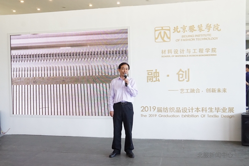倪賽力副書記在致辭中提到:“畢業設計是本科生培養的重要環節;畢業作品展是展示教師的教學成果和學生的學業成果的重要形式。紡織品設計專業是我校傳統的特色專業,也是我校“藝工融合”最具體現力的專業之一。本次作品展,同學們在對專業學習進行匯報的同時,也展現了對文化、創意、科技的理解和應用。希望同學們在未來的學習和工作中,要繼續發揚“融·創”精神,以中國文化為滋養,以未來科技為導向,以創造美好生活為追求,融合材料、工藝、藝術、文化、生活等各種要素,腳踏實地進行創新設計和大膽創造,承擔起青年人的職責使命。”