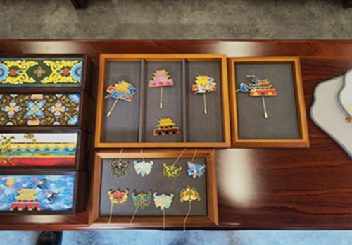 此次展覽以“融·合:傳統與現代”為主題,匯集2024年北京市非遺傳承人研培計劃“非遺文創產品設計研修班”“非遺圖案紋樣設計創新培訓班”50位學員的160余件作品,涵蓋掐絲琺瑯、繩藝編織、珠繡制品、燒箔畫、萬花筒、創意包、橡皮章等多種工藝。在傳承傳統技藝基礎上,學員們既保留了傳統藝術的神韻,提取出非遺的內在精華,又在表現技巧、造型意識上融入時代特點,獲得嶄新的視覺形象、表現效果,在注重情感表達的同時,兼顧生活實用和審美體驗。
