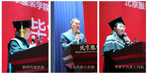 隨后,優(yōu)秀畢業(yè)生代表王同娟、教師代表洪濤以及校友代表王志波分別在畢業(yè)典禮上發(fā)言。王同娟同學(xué)講述了自己在繼續(xù)教育學(xué)院的求學(xué)經(jīng)歷,真切表達(dá)了對(duì)北服繼教和老師們的深厚感情;洪濤老師代表全體教師表達(dá)了對(duì)同學(xué)們的祝賀,并激勵(lì)廣大畢業(yè)生牢記習(xí)近平總書(shū)記說(shuō)的“根”與“魂”,牢記用傳承和創(chuàng)新兩條腿走路,牢記使命,勇于擔(dān)當(dāng);校友代表王志波與同學(xué)們分享了自己從求學(xué)到創(chuàng)業(yè)到成為行業(yè)精英的人生經(jīng)歷,并寄語(yǔ)學(xué)弟、學(xué)妹能腳踏實(shí)地、自強(qiáng)不息,不斷塑造和完善自己的人格。