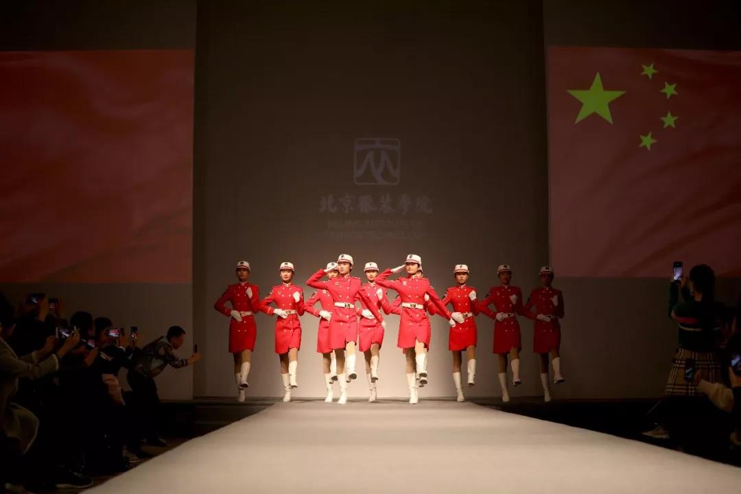 在10月13日的北京服裝學院北京校友聯誼會上出場的,是參加國慶閱兵民兵方隊的10名北服師生,她們邁著整齊的正步出場,還原了國慶閱兵分列式現場。