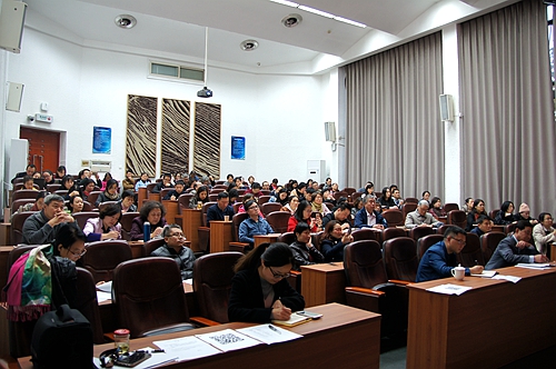 之后,郭強教授進行了《從西方琺瑯到中國景泰藍》課程思政示范教學公開課。他以對時間的感想為序,以自己的個人成長、對學業的思考和人生感悟為例,告訴大家要珍惜時間,認真思考如何利用好有限的時間去完成一名教師所肩負的責任,終身學習,振興教育,努力讓自己成為優秀的人,去完成培養優秀的人的歷史使命,形象的比喻和切身的體會感染著在場的每一位教師。接下來郭強教授從琺瑯——一個西方的舶來品、景泰藍—琺瑯的中國本土化、古“絲綢之路”與今“一帶一路”、今日景泰藍的傳承與創新四個方面講述了從西方琺瑯到中國的景泰藍。通過豐富的專業知識講授,郭強教授總結了“文明共享,洋為中用,中國特色”和“互融互通,古為今用,再創輝煌”的學術理念,強調了要樹立民族自信和文化自信,同時要尊重事實,有容乃大,要不斷從實踐中創新,今日的傳統即為昔日的創新,創新和發展是對傳統文化最好的傳承。最后郭強教授借用習近平總書記的講話“絕不能以犧牲生態環境為代價換取經濟的一時發展”“我們既要綠水青山,也要金山銀山。寧要綠水青山,不要金山銀山,而且綠水青山就是金山銀山。” 表達了自己未來的學術研究暢想中傳統手工藝生產要注意保護環境的問題,強調研究開發任何東西不能以犧牲環境為代價,綠水青山才是我們最大的財產。在整個公開課示范過程中,郭強教授以豐厚的學識、詼諧的語言,在傳授豐富的專業知識的同時,以自己對教師職業的熱愛和學術理念去影響著在場的每一個人,與會教師們受益匪淺,對如何講好課程思政建立了意識,增強了自信。