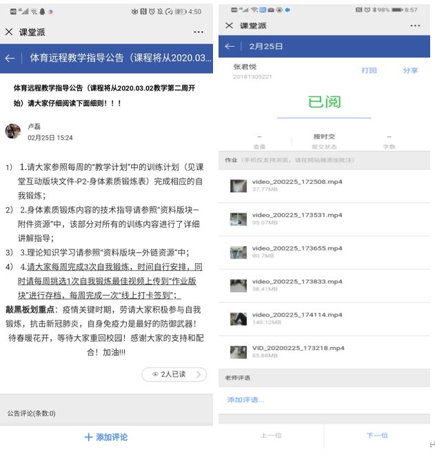 通過組織體育網絡班級、錄制、發布指導鍛煉視頻等形式實現對學生的全覆蓋輔導。