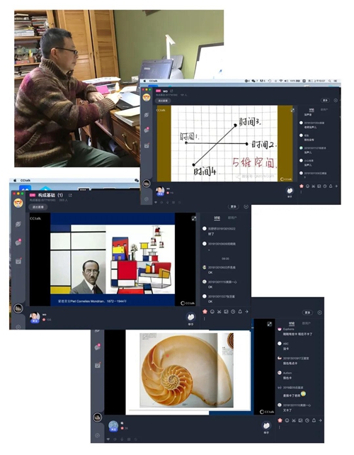 按照學校原教學計劃,《構成基礎》將9個自然班290余名學生組成五個課堂,由5位教師分別授課。一場猝不及防的新冠肺炎疫情,打破了原有計劃,也促成了今天《構成基礎》課程全面在線統一授課的局面。本課程為藝術設計基礎通識課,通過對“信息形態”的收集、觀察、寫生、歸納,引導學生了解自然形態與人工形態的基本特征,運用形態構成法則掌握形態的概括能力、解析能力和重組能力,有效地開拓學生形態創造的邏輯思維和抽象思維。