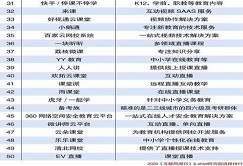 《互聯(lián)網(wǎng)周刊》公布2020年教學(xué)直播平臺(tái)排行榜