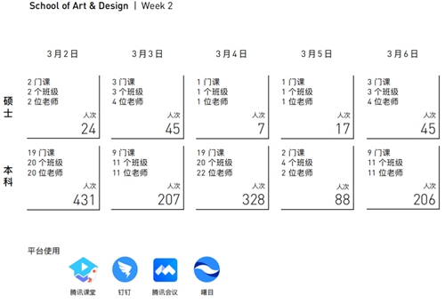 藝術設計學院第2周每日開課數據(王江濤老師協助設計)