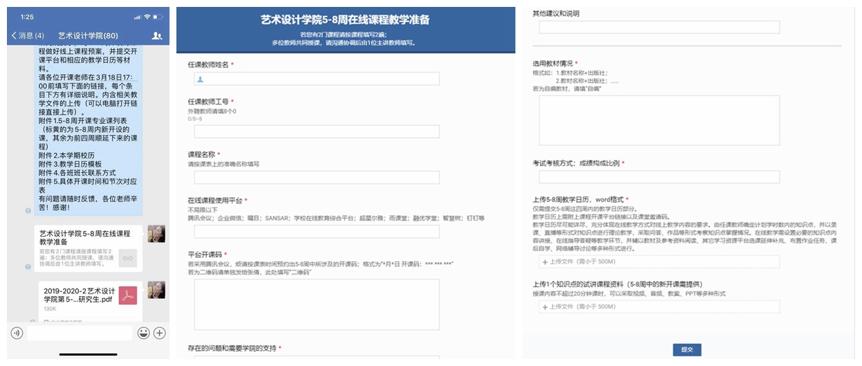 張倩老師深知在線教學對任課教師的壓力,教學內容和進度都要進行全方位的調整和測試,為了盡可能節約任課教師的精力和時間,她整合了教務處、研究生院、教學督導與評價辦公室等部門的所有信息,通過在線工具一次性收集所有課程的開課信息、應用平臺、教材信息、教學日歷、知識點的試講等所有材料,務求高效準確的同時,減少任課教師的分散、重復工作,數據和信息收集上來以后,她再自行整理成所需的各類正式表格并完成上報。