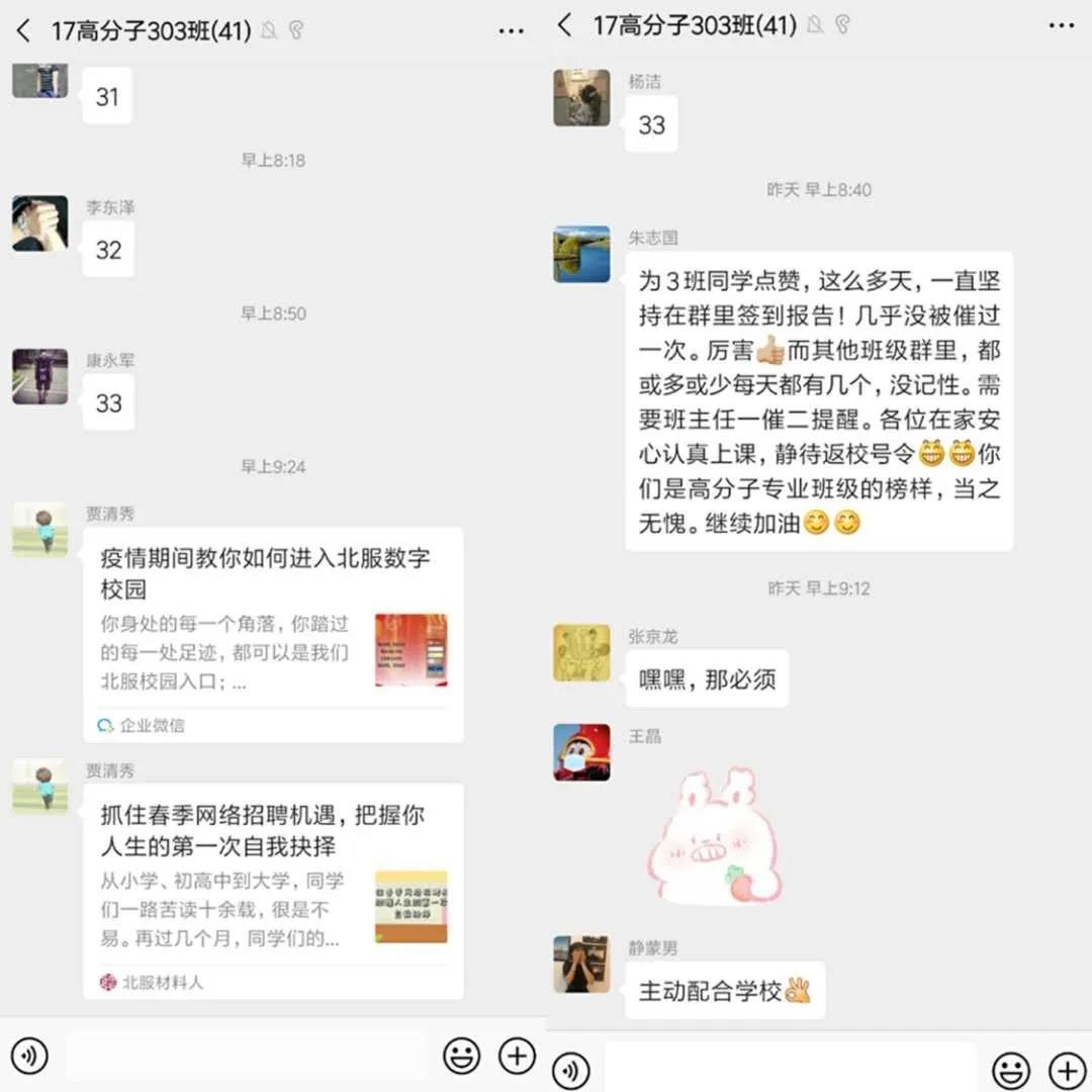 千里真情一線牽,在班委的組織協(xié)調(diào)下,在全班的共同努力下,作為優(yōu)秀班集體,我們積極快速地適應(yīng)了線上教學(xué),保持優(yōu)良學(xué)風(fēng),調(diào)整上課心態(tài),提高線上學(xué)習(xí)的效率,加強交流、增強互動,展現(xiàn)出了積極向上的學(xué)習(xí)風(fēng)貌。