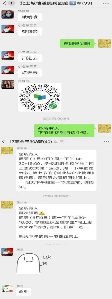 線上學(xué)習(xí)需要同學(xué)有較高的自律性,并且需要時間適應(yīng),為此,班委組織成立了以宿舍為單位的6個學(xué)習(xí)監(jiān)督小組,組內(nèi)同學(xué)互相監(jiān)督每日學(xué)習(xí)并且還要每日打卡。班委每次課都查看班級同學(xué)的出勤情況。