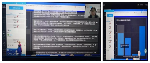 “思想道德修養與法律基礎”教研室全體教師在本次線上教學中采用的主要授課平臺包括騰訊課堂和中成智慧課堂。騰訊課堂簡便直觀、穩定性高,但課堂考勤和互動情況無法得到記錄和保留;中成智慧課堂可以實現課堂的實時、全員互動,并且學生到課情況和互動記錄會清晰準確地得以保留,但無法獨自作為直播授課的工具。教研室全體教師同時使用兩個平臺,在進行直播授課時,充分利用“騰訊課堂”的“舉手”功能與“中成手機智慧課堂”的“互動答題”功能,實現直播授課過程中的全體學生的實時全員互動和點對點問答。在“騰訊課堂”中,通過“屏幕分享”功能使學生實時觀看到在“中成手機智慧課堂”中的答題情況,對學生的答案進行及時的、有針對性的分析講解,是了解學生對課程內容的掌握情況、思想變化情況并給出具體反饋的有力工具,使教學更具針對性和互動性。同時在線課堂氣氛更為活躍,增加了學生線上課程的專注度。兩個平臺聯動互補,既克服了線上教學缺乏互動的局限性,同時也為學生的期末評價留下準確客觀的參考資料。