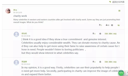 同時,教師啟發學生利用現階段免費的網絡學習資源,對比反思相關論文的寫作思路與分析過程,借鑒自己研究的相關論文作為案例,幫助學生學會用學術語言闡釋理論與實踐結合的全過程。目前總體來看進展順利,特別是每周一次的集中交流,學生之間相互學習,相互借鑒,也暗自較勁。對于文科而言,在一定程度上網絡更方便論文的集中輔導,共享平臺操作便捷,每位學生的論文撰寫過程都公開透明。