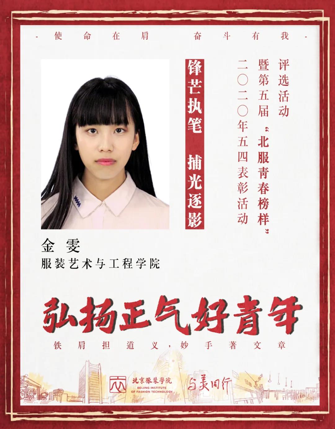 她就是來(lái)自服裝藝術(shù)與工程學(xué)院的弘揚(yáng)正氣好青年:金雯。