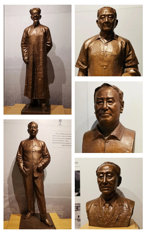 4. “世紀探索”位于第五展廳,包括“學術殿堂”和“斷代探源” 兩個單元。采用雕像、多媒體、采訪視頻播放、圖文介紹等多種形式,重點展示夏文化探索歷程中六位先驅的生平、主要成果以及夏商周斷代工程和中華文明探源工程的概況與成果,突出表現二里頭遺址在兩大工程中的重要價值,這也是國內首次對兩大工程概況與成果的集中展示。六位著名先驅青銅肖像雕塑有《顧頡剛像》《夏鼐像》《徐旭生像》《安金槐像》《鄒衡像》《趙芝荃像》,作者:馬天羽、牛亞南、張萬興。