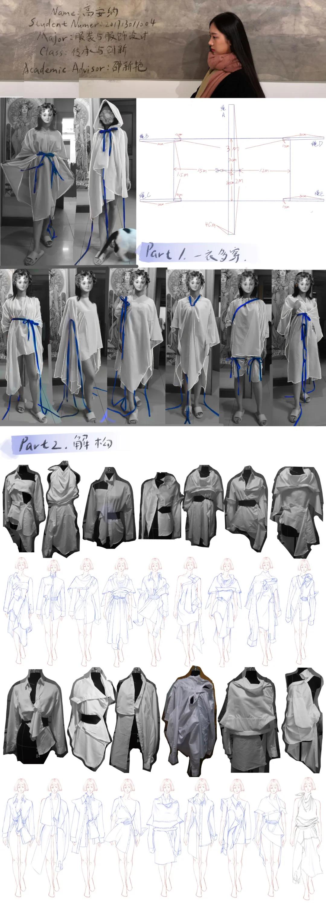 今天,對2017級服裝與服飾設計專業服飾傳承與創新設計班同學們的創意結構網絡課程作業進行網上展示。為了使作品達到最好,同學們從案例選擇、白坯造型實驗,再到作品拍攝、排版等,經歷了不斷的修改與完善的過程。在此與大家分享,共同進步。