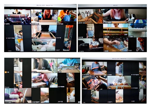 由于空間限制,學生不能在一起進行設計與織造,從而缺少了在一起互相學習與激發靈感的環境,所以在網絡上讓同學們按小組分時段打開攝像頭進行可視織造,在講評時視頻展示創意想法以及設計的織物成品,營造出共同學習與實踐氛圍,鍛煉了團隊協作的能力的同時,也讓老師能更實時地對學生的學習狀況進行掌握,做出有針對性的輔導,取得了良好的效果。