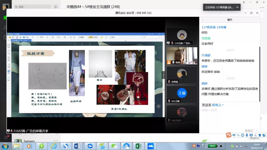教學(xué)特色:在教學(xué)組織上,課前15分鐘通過平臺播放課程相關(guān)的視頻,引導(dǎo)學(xué)生按時上課,提前進(jìn)入狀態(tài)。課堂中用時間線理清歷史上時尚流行趨勢脈絡(luò),用流行趨勢理論來對接時尚案例,畫龍點睛,抓住時尚流行本質(zhì)。授課中,兩位老師一位講授知識點,一位利用微信群和直播平臺帶動學(xué)生參與溝通,觀察和把控學(xué)生學(xué)習(xí)節(jié)奏。學(xué)生邊聽邊思考、邊學(xué)習(xí)、邊實踐,提升了對知識的認(rèn)知和吸收。課上的交流和互動亦可以隨時調(diào)動網(wǎng)絡(luò)資源,提出概念或問題后,讓學(xué)生們通過匯集網(wǎng)絡(luò)資源實現(xiàn)概念的初步認(rèn)知,引導(dǎo)學(xué)生研究性學(xué)習(xí)。同時,微信群里的互動內(nèi)容成為寶貴的資料庫,有效的擴(kuò)展知識點,形成內(nèi)容上的補充。