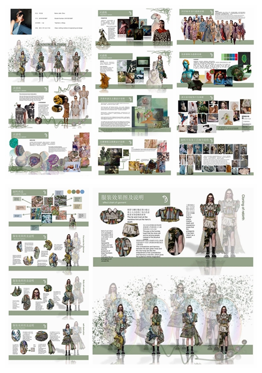 要求:課程通過(guò)學(xué)習(xí)拓展設(shè)計(jì)思維的方法,實(shí)踐從解讀設(shè)計(jì)目標(biāo)、靈感選題、靈感分析、設(shè)計(jì)拓展、設(shè)計(jì)對(duì)象分析,到形成設(shè)計(jì)方案的設(shè)計(jì)全過(guò)程,培養(yǎng)學(xué)生掌握應(yīng)對(duì)未知設(shè)計(jì)任務(wù)、不同設(shè)計(jì)對(duì)象、充分展開(kāi)創(chuàng)意思維、深化設(shè)計(jì)的能力。具體作業(yè)以下達(dá)任務(wù)書(shū)的方式,要求學(xué)生完成從靈感到設(shè)計(jì)方案的完整視覺(jué)語(yǔ)言呈現(xiàn),它必須展示出從初始調(diào)研過(guò)程的靈感碎片到制作可實(shí)施性服裝的完整過(guò)程。