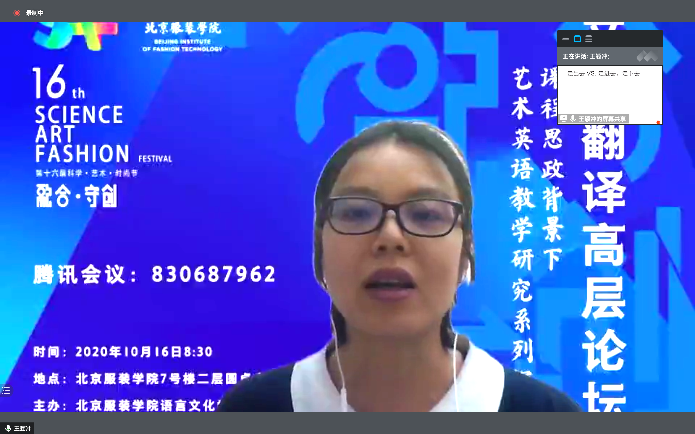 我校語言文化學院張慧琴教授和史亞娟副教授分別發言,張慧琴在簡要介紹了學院中外服飾文化交流中心的歷史與現狀之后,圍繞“服飾文化翻譯協調之美”主題,闡釋了服飾文化的特殊性、服飾文化翻譯的特點、中外學界文化翻譯相關理論的研究現狀,在梳理服飾文化翻譯協調理論脈絡的基礎上,繪制了文化翻譯協調理論實施的全過程圖,并結合案例論證了服飾文化翻譯就是探索服飾文化和諧美的歷程,強調只有在尊重服飾文化差異中協調文化差異,才有可能最大限度傳承優秀文化,成就服飾文化翻譯協調和諧之大美。