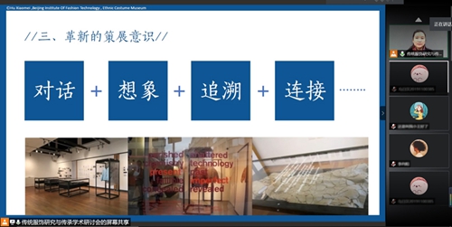 10月21日,“融合·守創(chuàng)——傳統(tǒng)服飾研究與傳承學術研討會”以線上直播的形式在北京服裝學院民族服飾博物館舉行。研討會由北京服裝學院、北京博物館學會共同主辦,北京服裝學院民族服飾博物館、奧運服飾文化研究中心、北京博物館學會非物質文化遺產(工藝美術)專業(yè)委員會承辦。