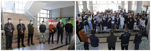 北校區分管教學的領導在與任課師生們溝通藝術設計基礎課程課業展評事宜