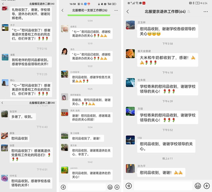 今年的“七一”慰問工作按照京內黨員群眾、京內困難黨員群眾和京外境外黨員群眾分類開展,同期開展了上半年大病困難補助工作、慰問了今年滿整年齡的38位老同志。受疫情影響,今年的七一慰問活動通過網上購物速遞到家以及發放慰問金等方式進行。截止6月底,京內外的所有離退休老師已全部收到慰問品(慰問信)或慰問金,我校七一離退休人員慰問工作實現了全覆蓋。