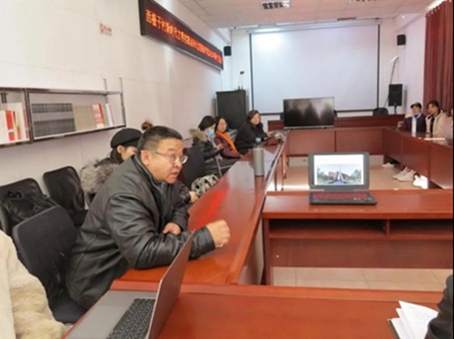 李政首先進行了發言。他對西柵子村村委會支持藝術設計學院的教學工作表示感謝,并對近期的工作目標和計劃以及考察的目的和任務作了說明。同時,就“景觀藝術裝置”的設計、支援和施工事宜與村委會交換了意見。“景觀藝術裝置”是一個高度將近十米的藝術裝飾,是一個具有實際使用功能和精神功能的作品。在它的內部是一個大型的活動場所,人們可以在里面進行一些文化娛樂活動,比如開展覽,進行一些日常的文化娛樂活動等。
