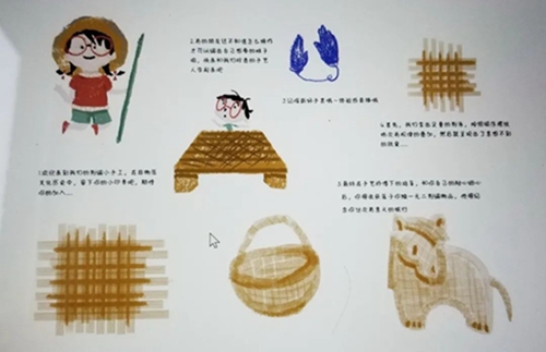 第五組做了一個總體瀏覽,用類似白描長卷描繪的方式對西柵子村的人文和“荊編”工藝的互動,以及人和長城之間關系進行了介紹,比如造長城磚等。