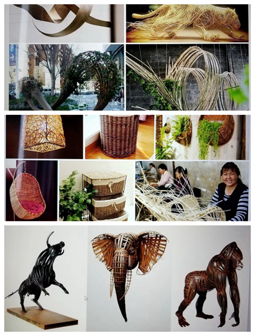 第二組圍繞當地特色傳統工藝“荊編”進行匯報。環境設計專業四年級的“環藝創新工作營”的學生,通過對西柵子村的考察,將目標確定在已經列入非物質文化遺產的“荊編”上,這對于西柵子村走上脫貧之路是一個很正確的方向。小組學生不僅探索了西柵子村非遺“荊編”的設計與都市生活需求的結合,而且設計出了可批量化生產、帶有高附加值的藝術裝置和家居產品。學生們還帶去了很多可以提高西柵子村“荊編”水平的樣式資料和設計的款式圖樣,以供西柵子村村民參考。這些圖樣不僅符合實際需求與審美,并且提升了西柵子村“荊編”水平,大大提高了產品的附加價值,為西柵子的村民提供了“智力”幫扶,有助于西柵子村村民通過自己的技能和勞動扭轉自身低收入的困境。