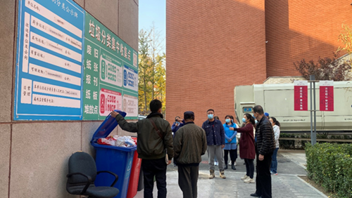 講座之后,芍藥居四社區黨委參觀了我校芍藥居校區垃圾分類工作成果。