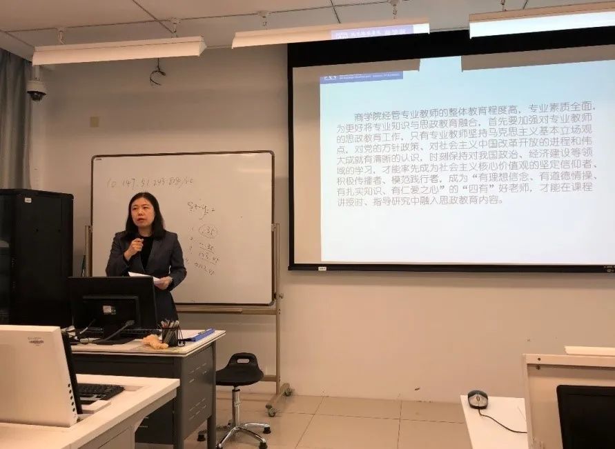 郝淑麗老師重點匯報了課程與思政如何有機浸潤,而不是生硬結合。應該通過課上案例、課后作業以及企業家進課堂的形式結合。具體方法有管理類課程案例可以結合我國優秀企業,弘揚傳統文化;偏技術類課程從課程發展歷史中融合我國的先進技術;財務類課程從學生職業道德培養角度入手等。特別是在課程教材選用上盡量選擇馬工程教材。