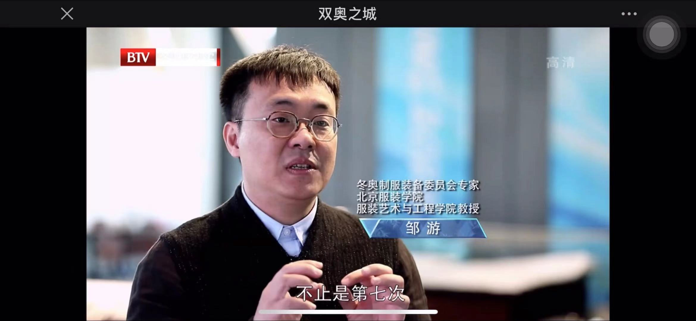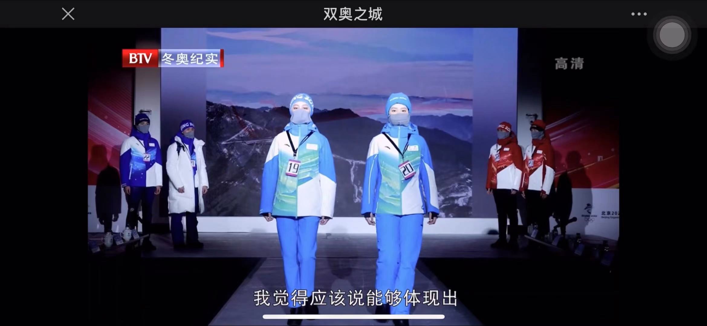 2月19日,北京電視臺奧運頻道播出了《流動的風景-冬奧制服專題紀錄片》,對北京服裝學院賀陽教授等多名教師及北服安踏奧運聯合實驗室參與的系列工作進行了全方位報道。