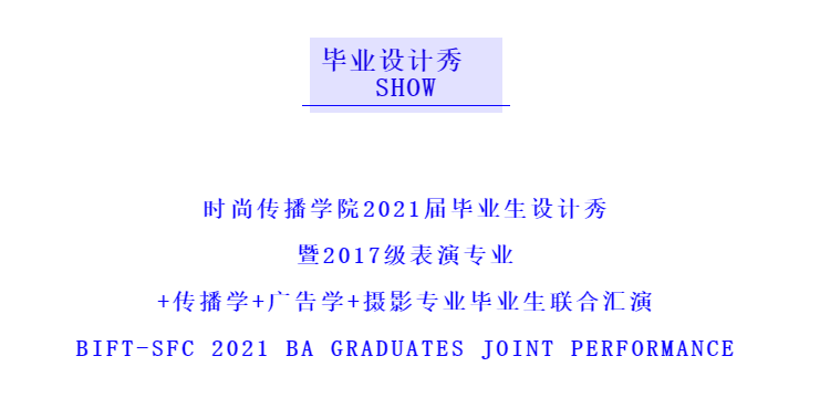 北京服裝學院時尚傳播學院2021屆本科畢業設計作品展于6月1日在櫻花園校區風雨操場舉辦,同時學院將于6月10日、11日在7號樓1號秀場舉辦兩場主題畢業設計秀暨時尚傳播學院2021屆畢業生聯合演出活動。