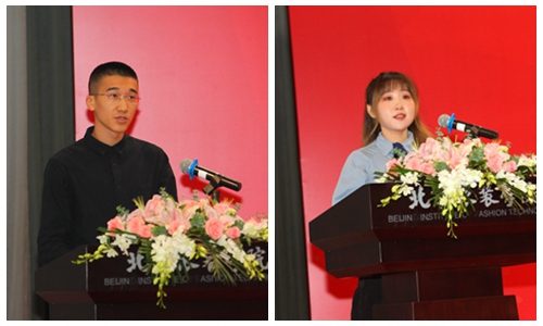 服飾藝術與工程學院2021級研究生王晨晨同學代表新生發言。對于即將開啟的研究生學習生活,她鼓勵同學們要勤學修身,以苦為樂。錘煉品格,勇于擔當。融入時代,服務人民。她表達了自己作為一名北服人的驕傲和自豪以及在專業領域追求卓越的奮斗目標。