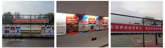 三個集中宣傳點按照防疫要求和區(qū)里統(tǒng)一安排,布置了宣傳材料和防疫用品,三個校區(qū)分別利用櫥窗、宣傳欄、以及辦公樓、教學樓、食堂、宿舍樓門口等醒目位置張貼系列宣傳海報、《致朝陽區(qū)選民的一封信》、《2021換屆選舉公告》等宣傳材料共60余張,在操場圍欄上懸掛硬質宣傳橫幅,電子屏滾動播出宣傳標語,宣傳點位放置易拉寶8個,在校園營造良好的換屆選舉宣傳氛圍。