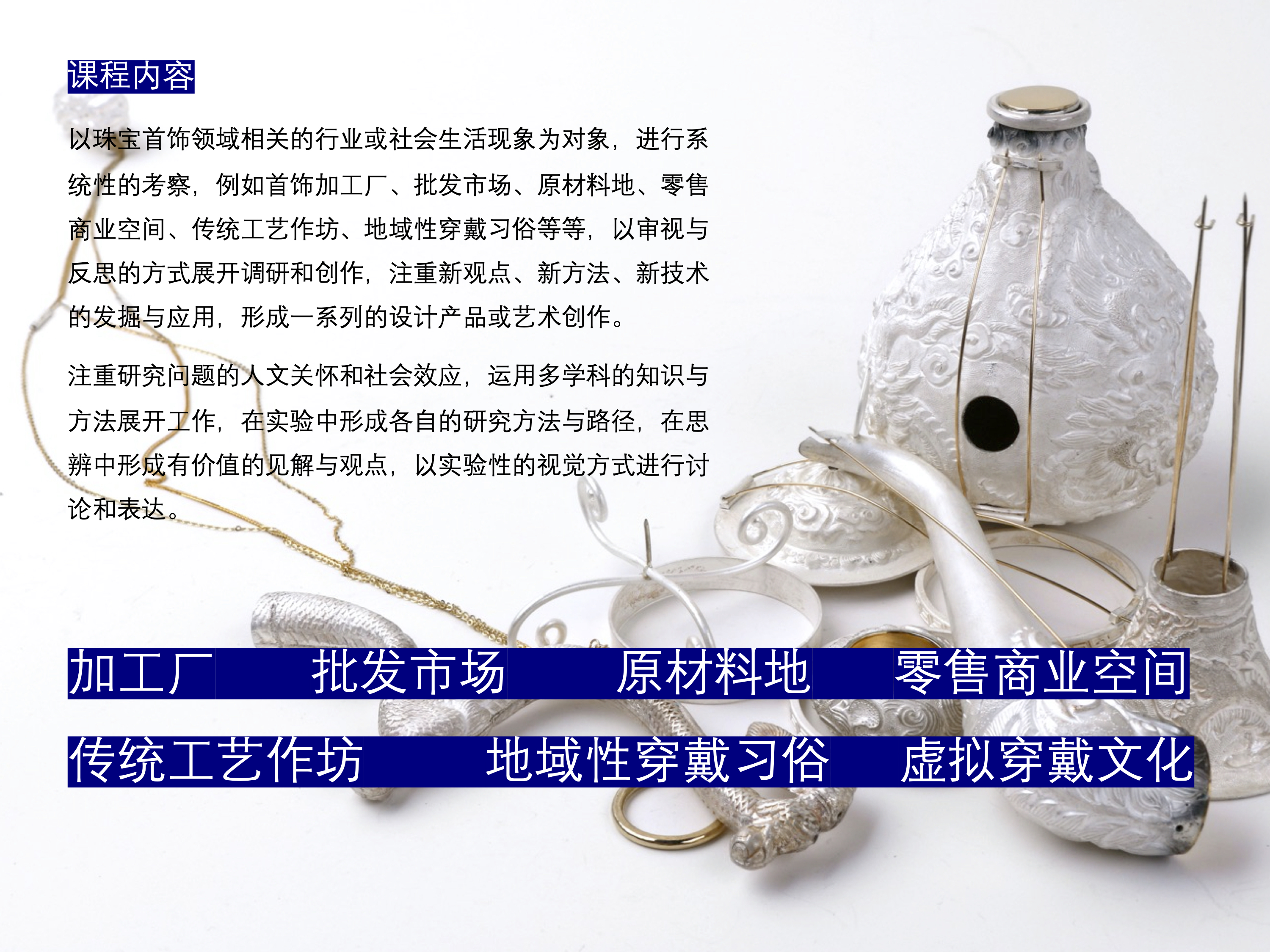 南京藝術學院設計學院工藝美術系主任、副教授王克震從首飾的起源反思當代首飾的新內涵,深度挖掘首飾的原始文化,創造性的關聯今天首飾的多元樣態,從自然、風格精神、象征與隱喻、敘事以及穿戴關系等角度,啟發學生開展觀念創新。