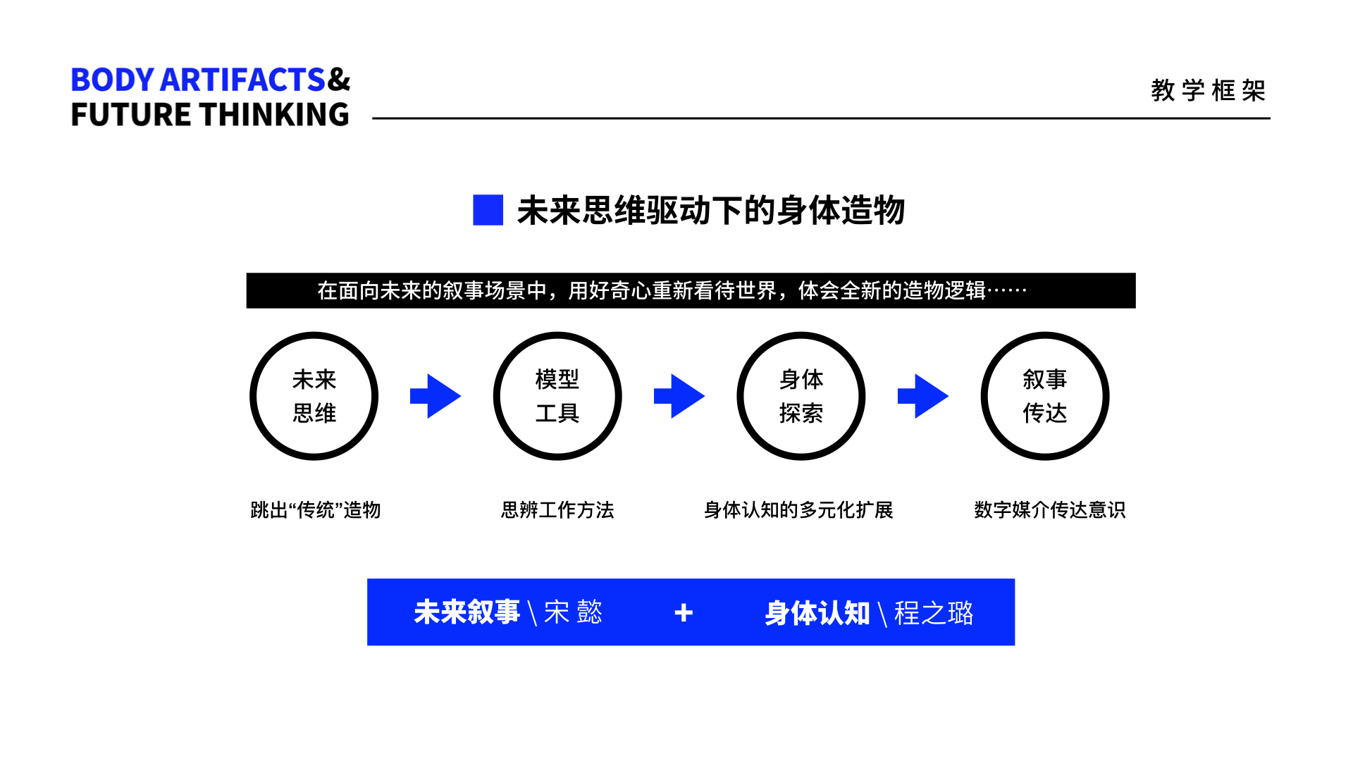 北京服裝學院服飾藝術與工程學院珠寶首飾教學部副教授宋懿、助理教授程之璐通過模型、工具和方法,帶領學生從未來思維的角度,探索首飾與身體的新型關系。并且借助多樣化的數字技術完成面向未來的概念敘事。